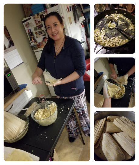 Now in general, I am pretty bad about recipes, I like to cook intuitively, picking an ingredient and running with it, adjusting as I go. I don’t have a specific recipe to share with you at this time because of that, but I will link some of the websites that I used for reference below. I decided to make a portion of the tamales for the part with food-processed cauliflower, some cheese, and an assortment of grain-free flours, mainly cassava and tapioca because they are stickier. I had to play with adding water and flour to the mixture to reach the right consistency. While despite being really good at eating them, I am also not an expert in the making of tamales.