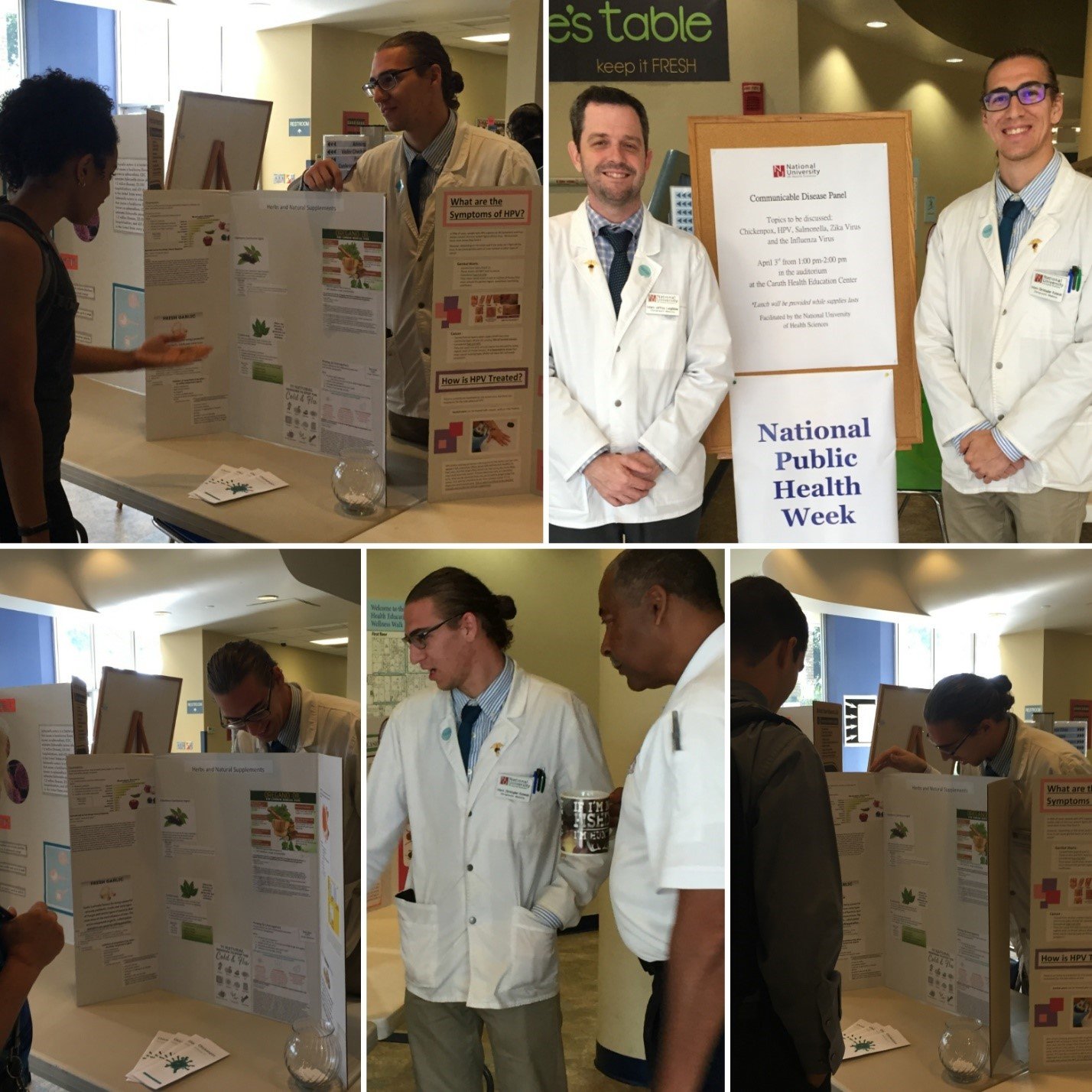 Recently, National University of Health Sciences brought National Public Health Week to St. Petersburg College. The student interns took turns during off hours to present multiple topics about public health to the masses. I participated on Tuesday with my colleague Jeff. We discussed food borne illness, hygiene, insect borne pathogens, and preventative herbs and foods to help with cold and flu season. We discussed the necessity to wash cutting boards and other surfaces to avoid cross contamination, washing hands, and properly screening for ticks, removing ticks, and preventing insect bites. I also discussed the anti-inflammatory properties of ginger and turmeric as well as the antimicrobial properties of ginger and goldenseal.