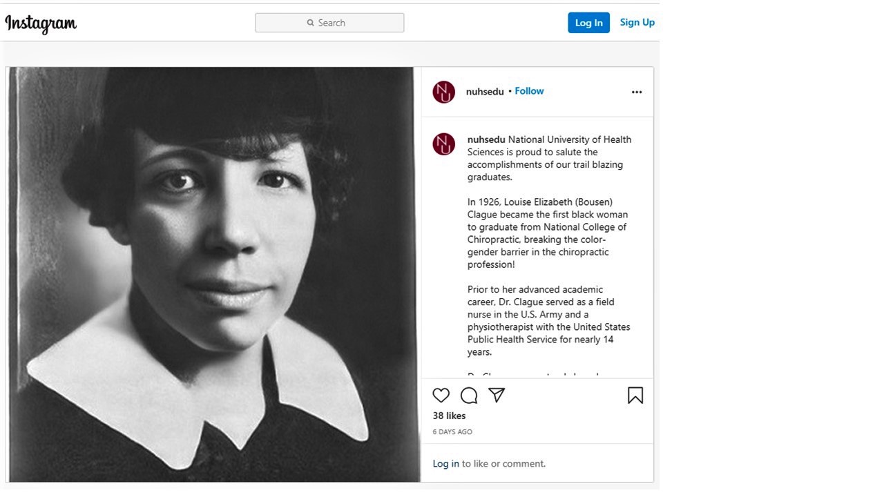 This month, NUHS honored African American History Month by publishing the accomplishment National College of Chiropractic alumnus, Louise Elizabeth (Bousen) Clague who earned her Doctor of Chiropractic Medicine Degree in 1926. This is a particularly inspiring account to me, as Dr. Clague was a woman and an African American who had achieved something quite significant and had done so at a time when the demographics that she represented were not afforded equitable opportunities to do so. The beauty of reflection on the advancements of African and African American peoples in the month of February is that it allows for becoming aware of how these communities have been and continue to be represented in various aspects of life, it promotes a sense of pride that builds self-esteem, and it reminds all those who reflect that the collective experiences of a people, primarily the successes in overcoming challenges and hardships builds resilience and serves as inspiration to those who follow.