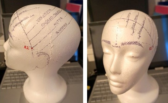 I found it somewhat challenging to learn the different areas by just looking at the notes. So, I went down to my local beauty supply store and purchased a Styrofoam wig head, this way I could map out all the areas and see how the different regions relate to each other. Online learning can be harrowing at times, but as a student you have to push through, get creative and figure out how to make things work for you!