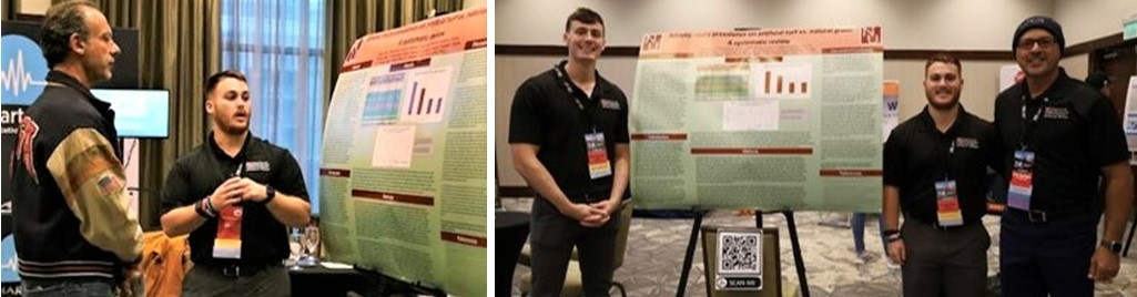 Last week, several NUHS students attended the yearly ACA Sports Council in Denver, Colorado where they presented their research projects, listened in on presentations, and networked with hundreds of other students and doctors in the country. My Tri-7 classmate, Bryan Karn, presented a systematic review with Michael Stern (Tri-10) comparing injury prevalence in athletes playing on artificial turf vs. natural grass. Their results indicated that an overwhelming majority of research stated that natural grass was safer for athletes than artificial turf. Their research project won First place — the “Tom Hyde ACA Sports Council Student Research Poster Project” Award!